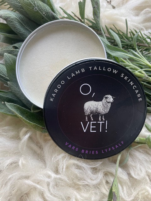 Tallow (Karoo free-range lamb fat), organic Honey, Beeswax and peppermint essential oil